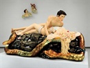 Jeff Koons, „made in heaven“, Jeff and Ilona, polychromes Holz, 1990. (links)