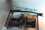Eine Überraschung würde mich am Zimmer erwarten. Da ist sie: eine Toilettentasche gefüllt mit einem Fruchtsnack, einem Block, Zahnpasta und Kondomen (!!).  Tja, ich habe ja auch ein Doppelzimmer reserviert.
