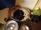 Darunter: Foxy und Mike übereinander in/auf einer Tasche liegend