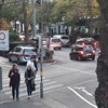 Eine tschetschenische Hochzeitsgesellschaft fährt laut hupend in einen Konvoi von mehreren Fahrzeugen teilweise die Beifahrer mit dem Oberkörper aus dem Auto ragend, auf den Autotüren auf dem geöffneten Autofenster sitzend, mit erhöhter Geschwindigkeit von der Giradigasse über den Opernring.
