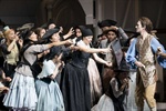 Bereits als Figaro vom Graf als „Signor Contino“, also vom Gräflein, sing, ist klar, wohin die Reise geht. Almaviva merkt nicht, dass er bereits angezählt ist. Während dieser noch überlegt, das „jus primae noctis“ wieder einzuführen, haben die Henker bereits die Guillotine, als ‚Vorschau auf die französische Revolution, für ihn vorbereitet. Liberté, égalité, fraternité.